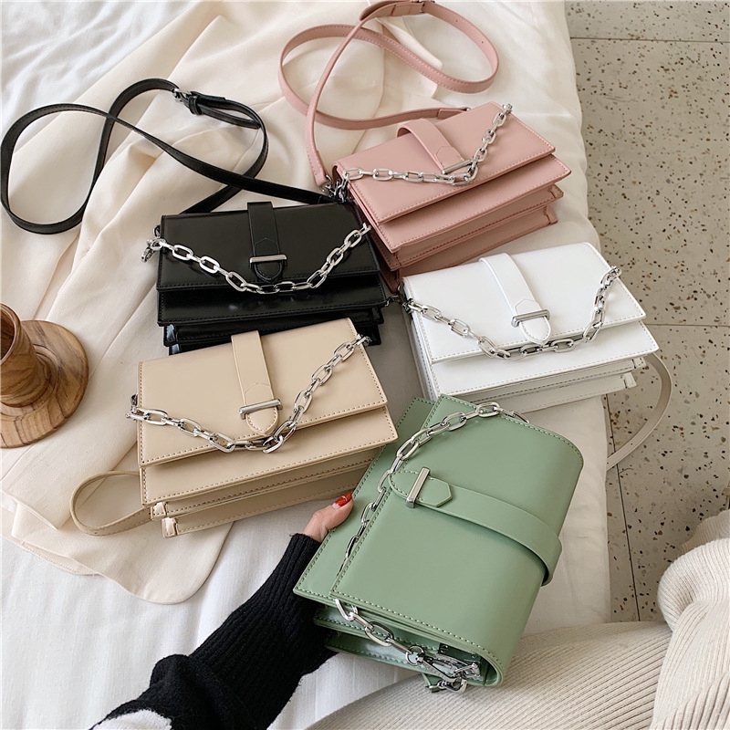 2020 Korean Chain Hand Held Organ Bag For Women Fashion Solid Color Flap Single Shoulder Shoulder Small Square Bag For Women Shopee Malaysia