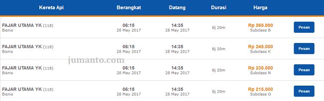 Harga Tiket Kereta Api Cirebon Jogja Tiket