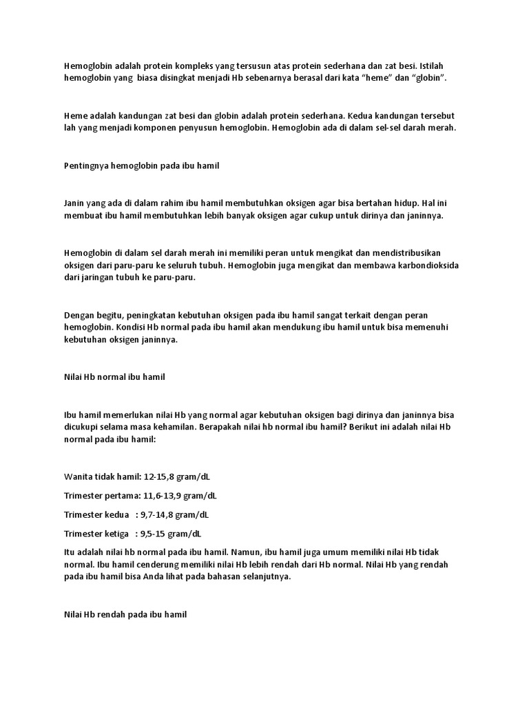 Hb Normal Ibu Hamil Berdasarkan Usia Kandungan