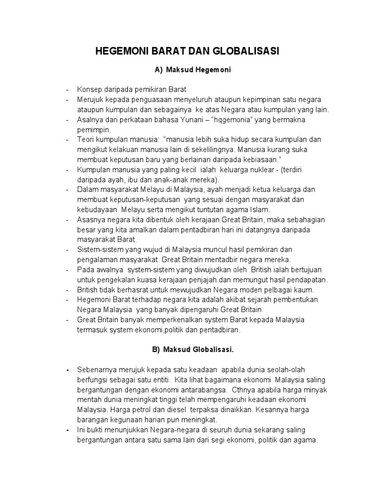 Hegemoni Barat Dan Globalisasi