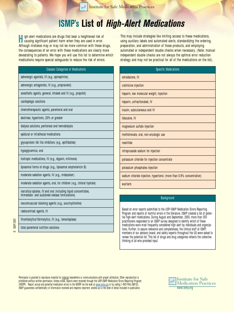 Your High Alert Medication List Relatively Useless Without Associated Risk Reduction Strategies Institute For Safe Medication Practices