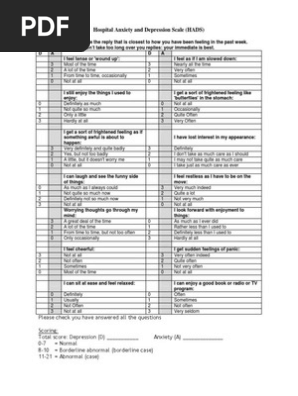 Pdf Hospital Anxiety And Depression Scale Hads Aastha Pandey Academia Edu