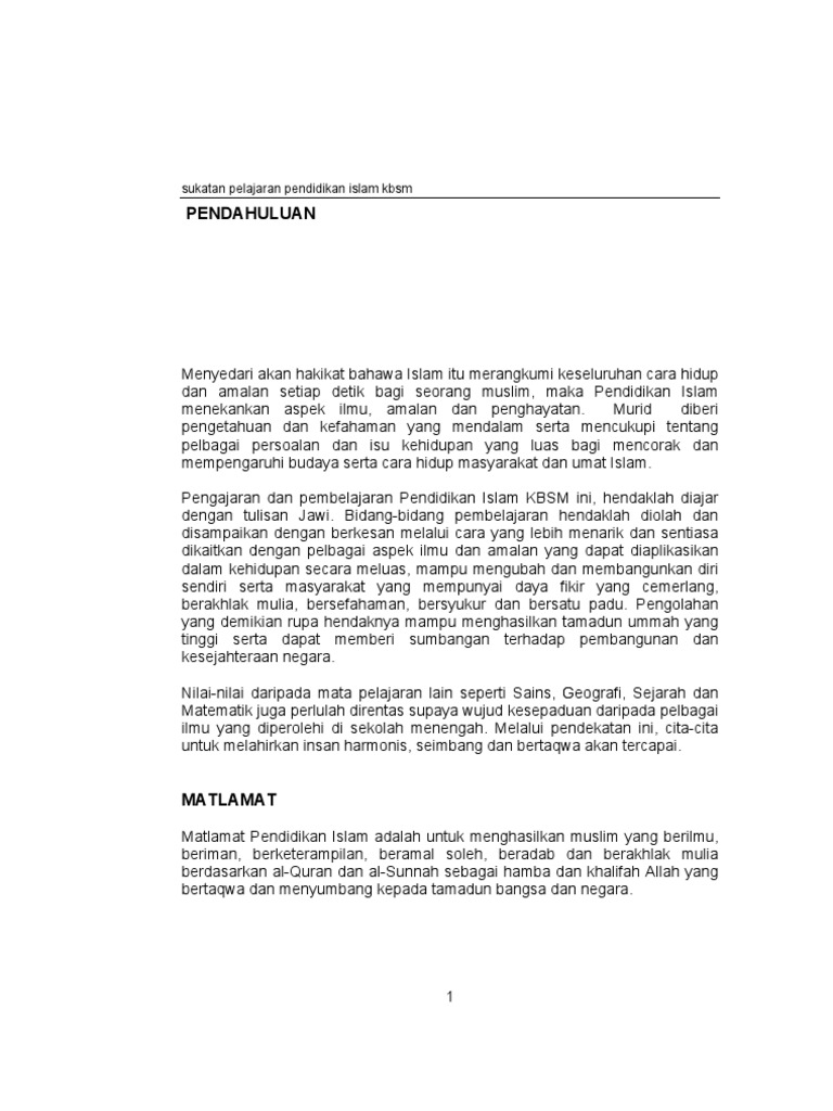Sukatan Pelajaran Pendidikan Islam Kbsm