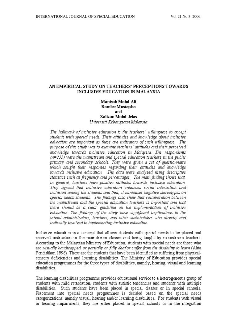 Pdf Comparison Of Special Education And Mainstream Teachers Efficacy Towards Inclusive Education Programme Classrooms In Malaysia
