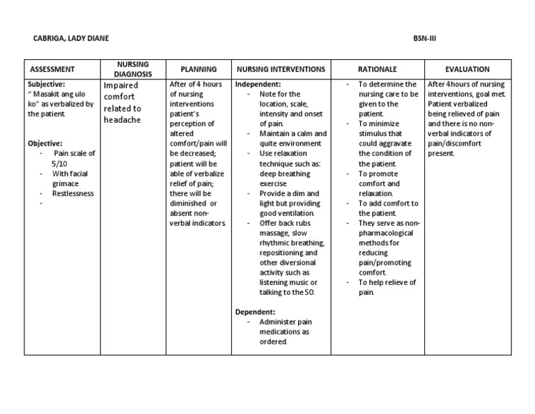 Doc Assessment Nursing Diagnosis Planning Nursing Interventions Rationale Evaluation Subjective Ruvz Vas Academia Edu
