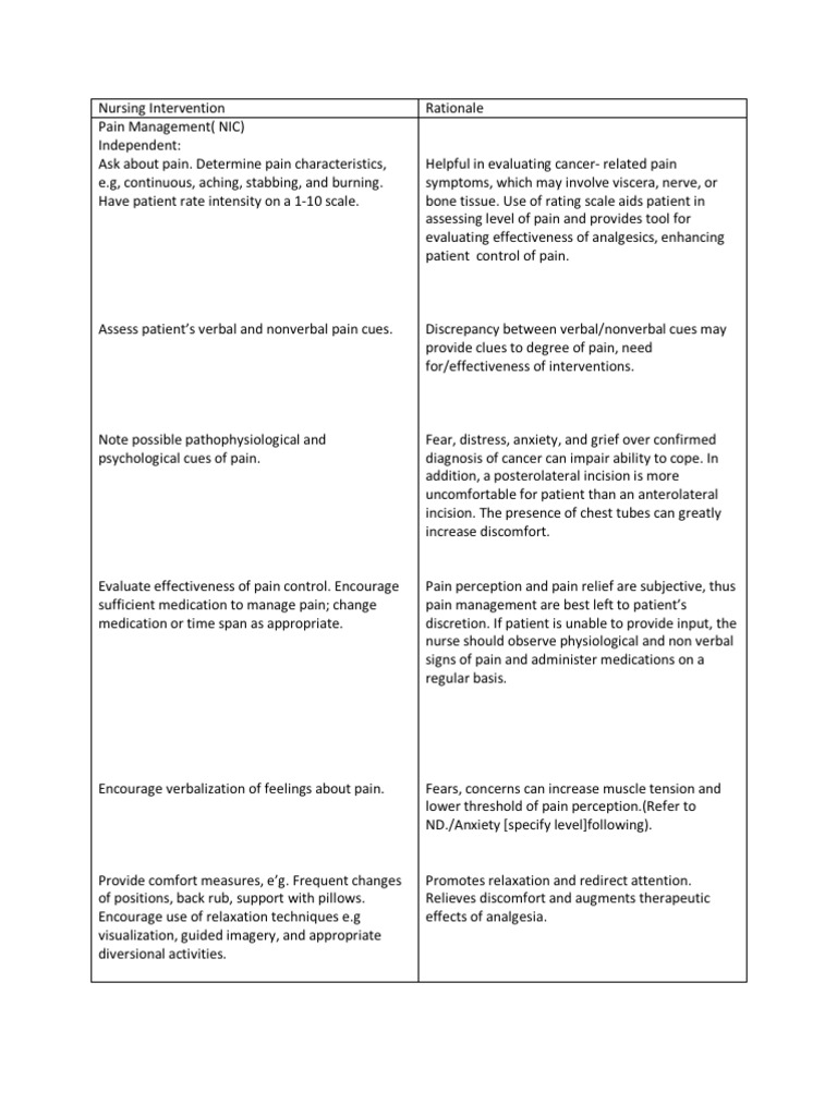 Acute Pain Nursing Intervention Rationale Pain Management Pain