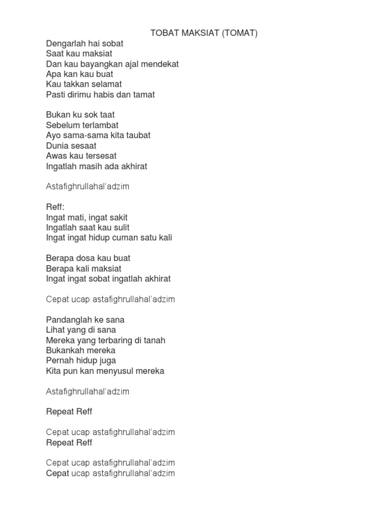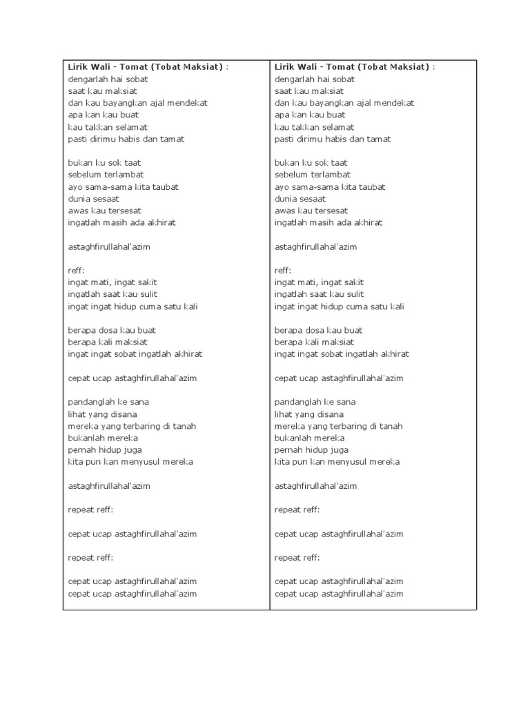Tobat Maksiat Lyrics By Wali Dengarlah Hai Sobat Saat