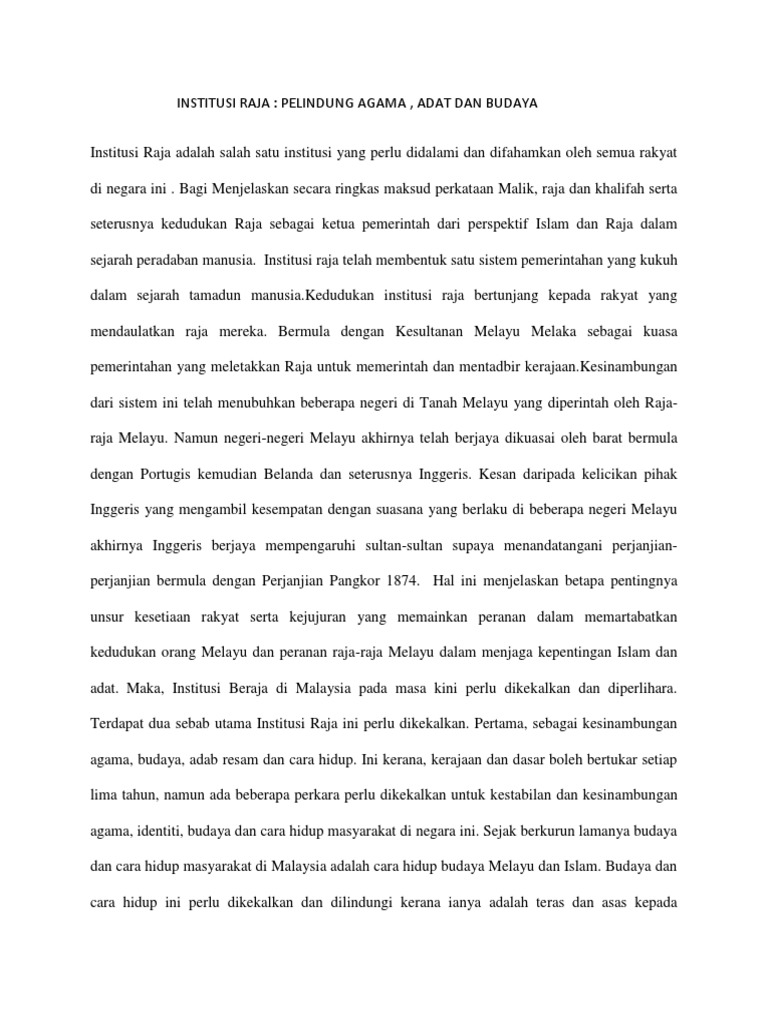 Doc Teks Pidato Institusi Raja Kelangsungan Tradisi Pada Era Modenisasi Muhammad Haiqal Bin Musa Academia Edu