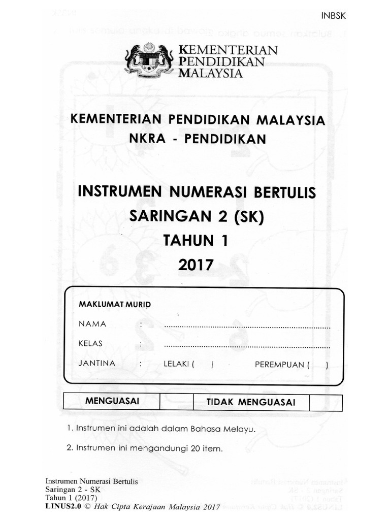 Instrumen Numerasi Bertulis Saringan 1 Sjkt Linus Ppdkp Downloads آ Inbsjkt Instrumen Numerasi Bertulis Pdf Document
